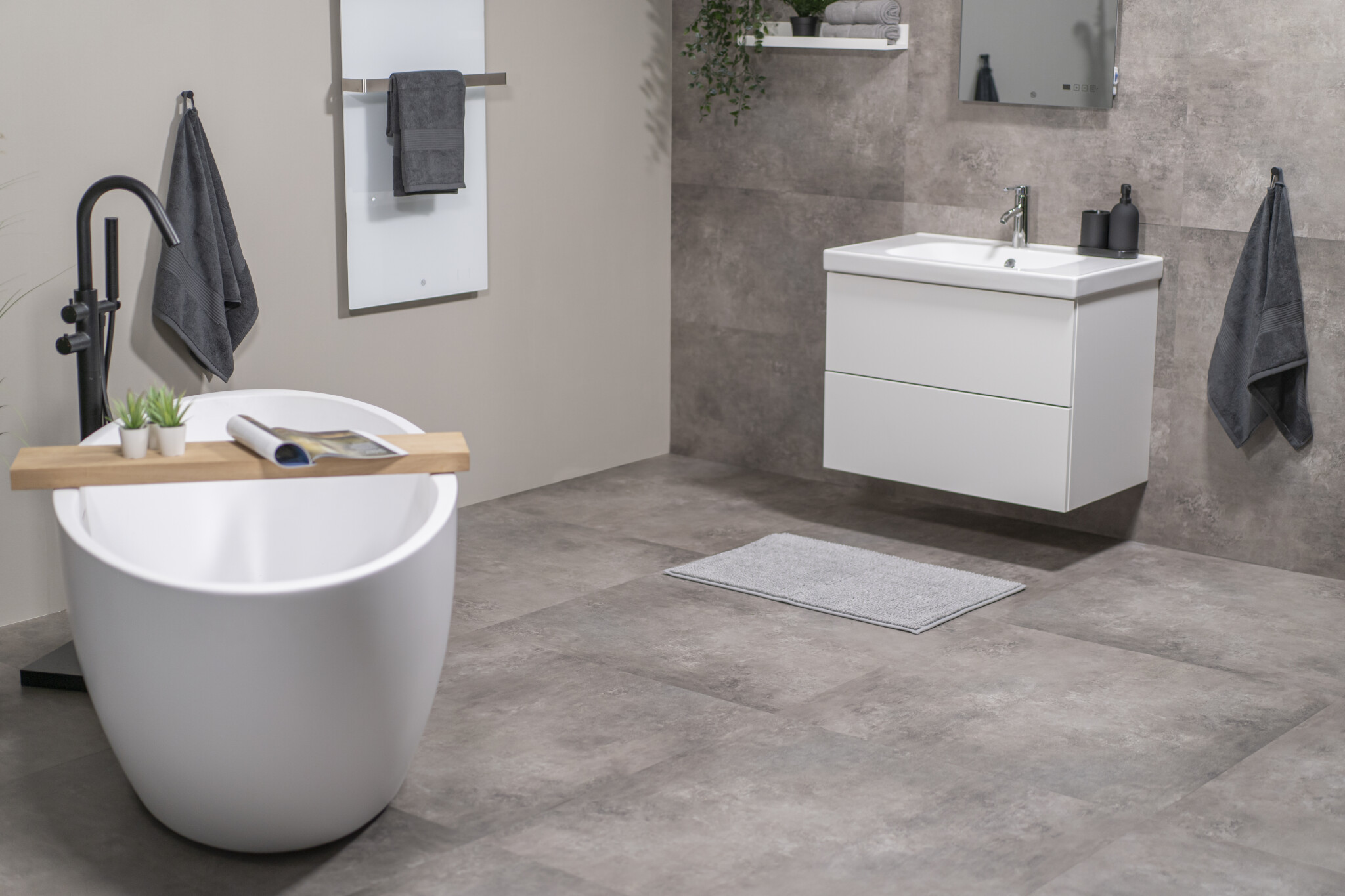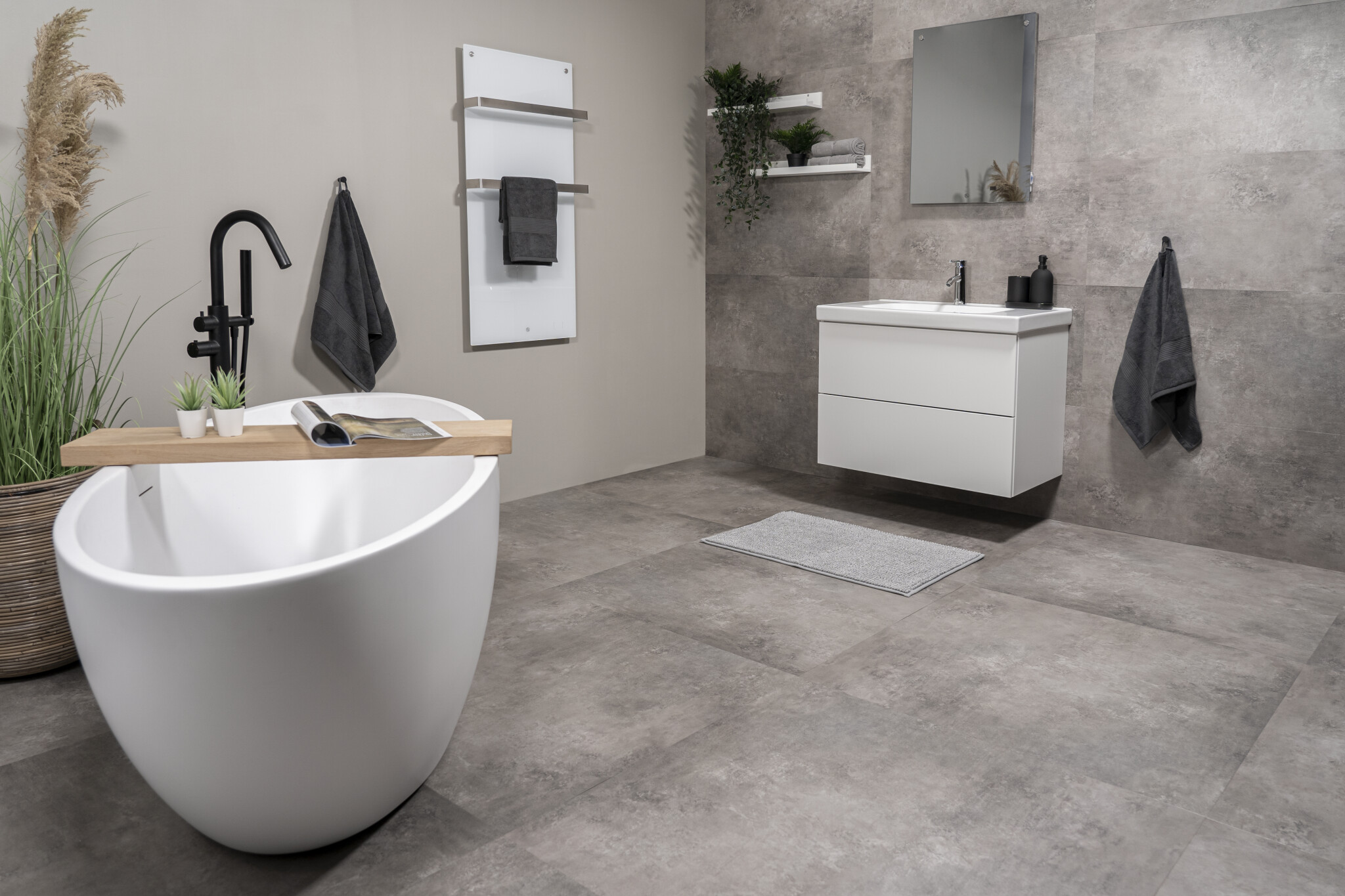 De Stone Dryback is de ideale keuze voor wie houdt van de uitstraling van een gietvloer of beton, maar het comfort wil van PVC. De vloer voelt, in tegenstelling tot echt steen, warm en zacht aan. Hij is uitstekend geschikt voor vloerverwarming; de warmte wordt efficiënt doorgegeven, waardoor je het systeem veilig kunt gebruiken tot maximaal 27 graden.