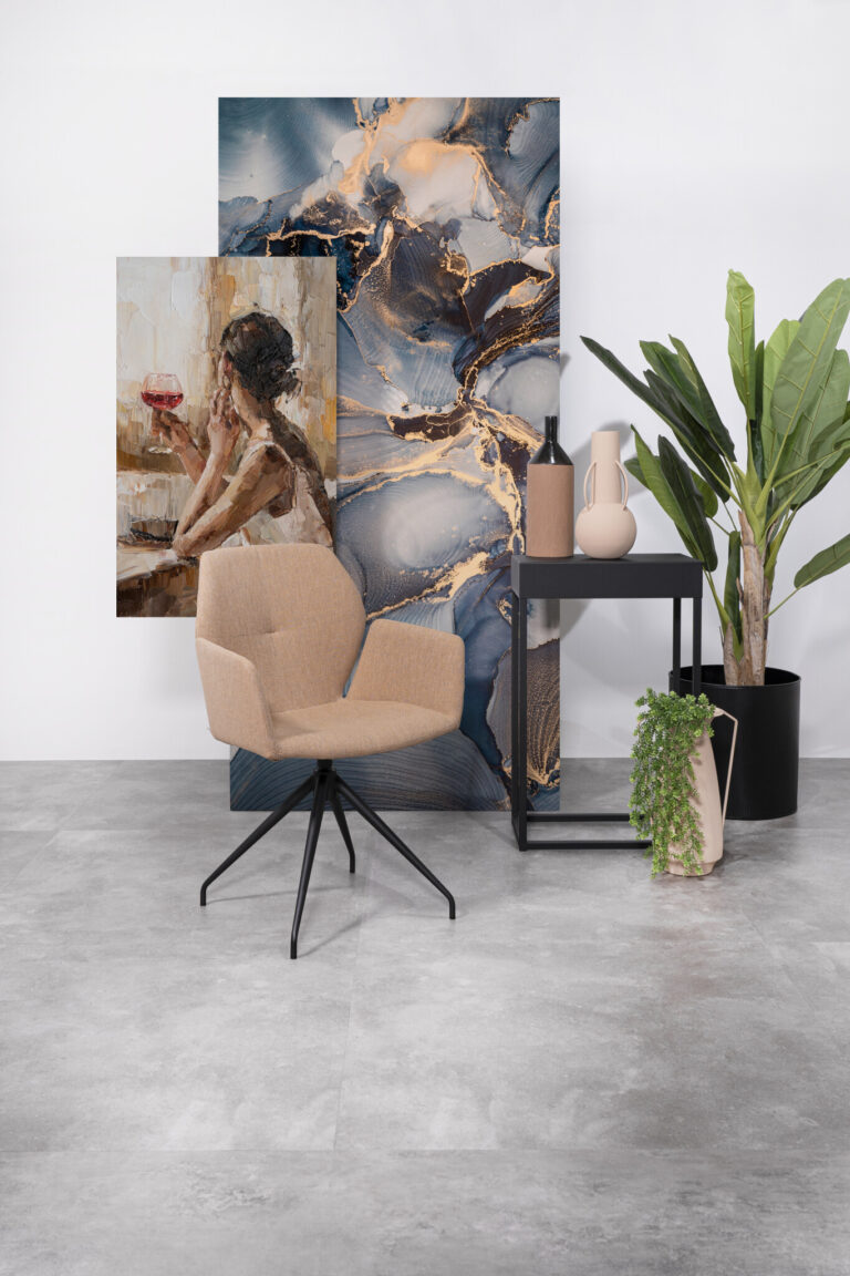 Het onderhoud is bovendien een verademing vergeleken met echt beton. De vloer is volledig dicht, vochtbestendig en vlekken trekken er niet in. Hierdoor is de Stone Dryback ook perfect voor de keuken of hal. Dankzij de geschiktheid voor zwenkwielen kun je deze vloer ook probleemloos in een kantoorruimte toepassen.